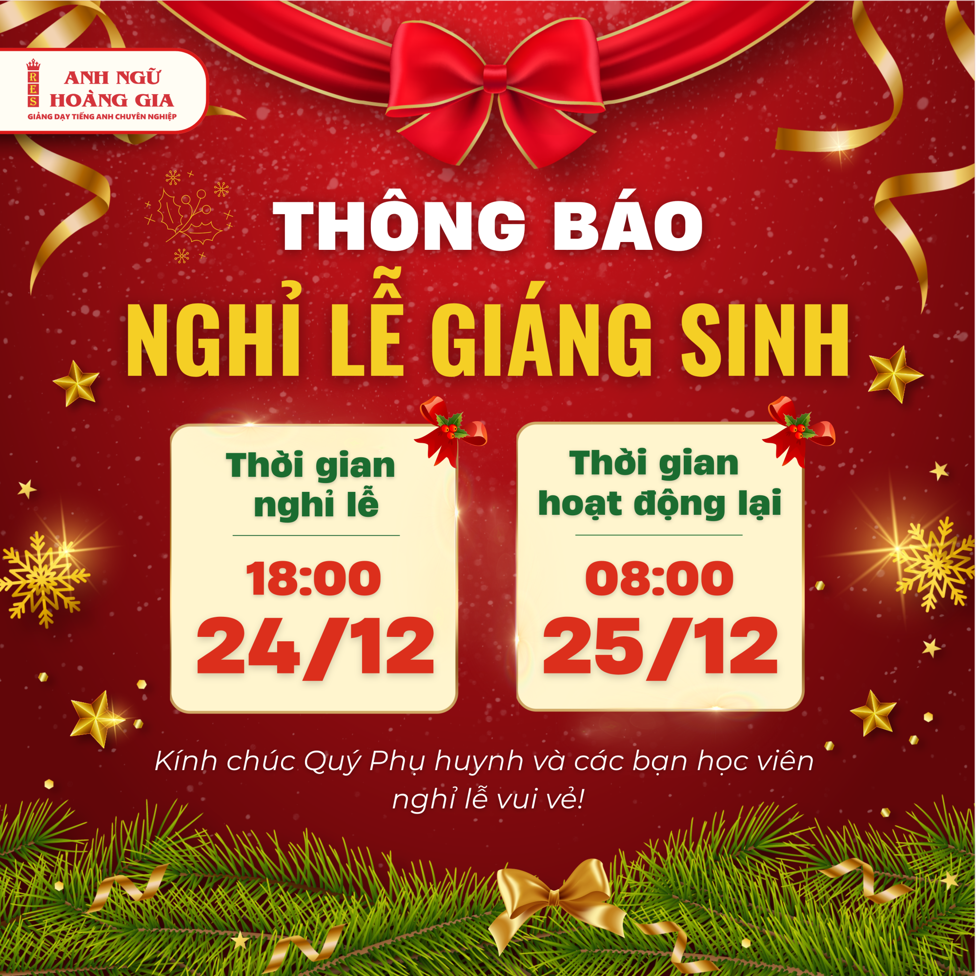 THÔNG BÁO LỊCH NGHỈ LỄ GIÁNG SINH 2025